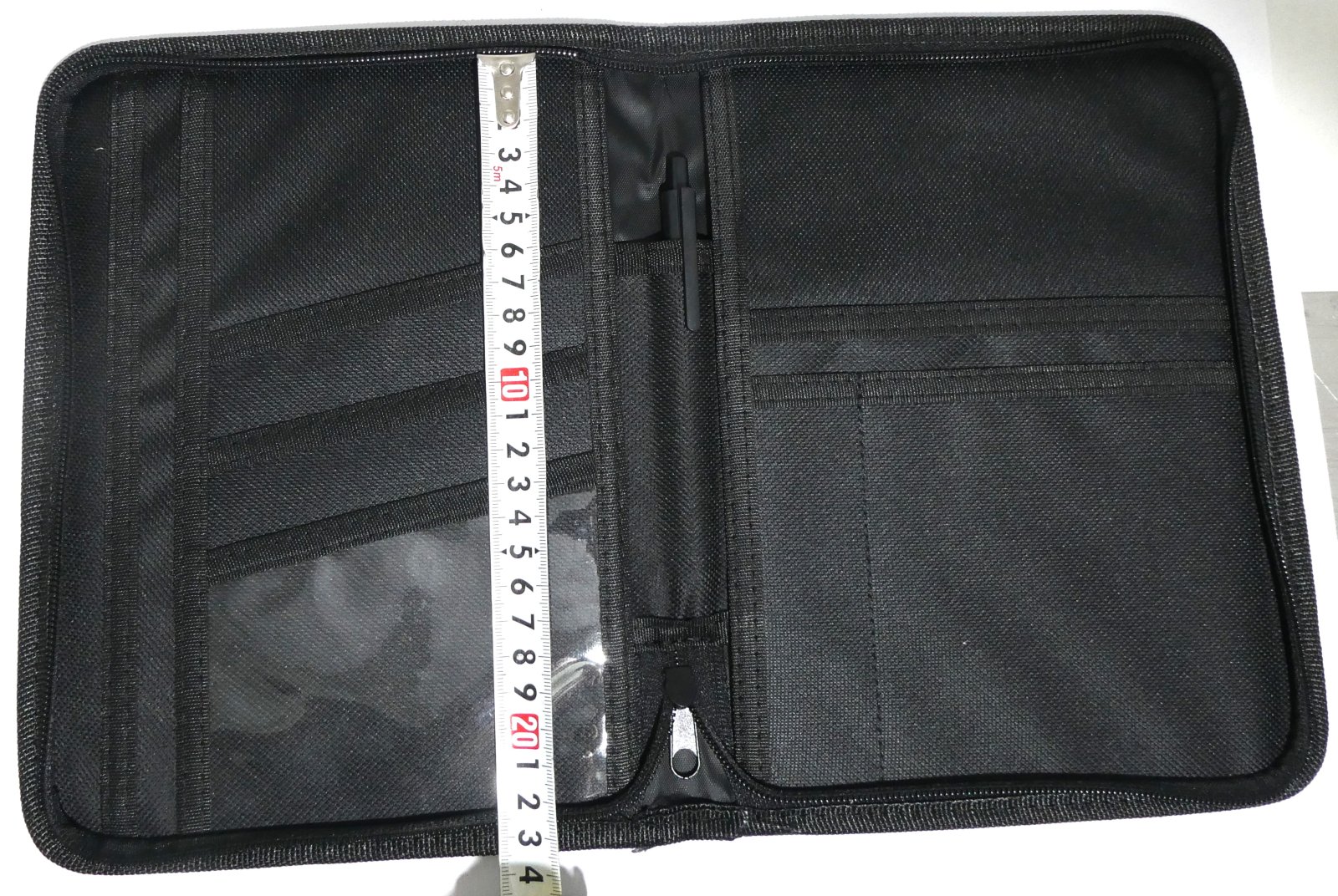 The document holder is equipped with a sturdy zipper that ensures your documents remain securely closed. This prevents papers from getting lost or damaged while driving.