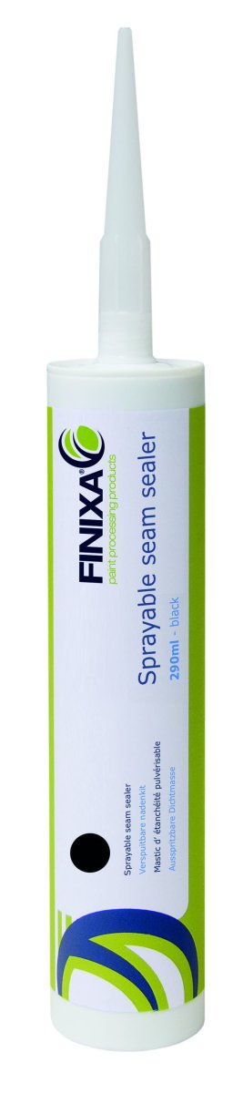 The FINIXA Sprayable Seam Sealer in black is specially developed for sealing and repairing both interior and exterior seams of cars. This sealer is ideal for replacing factory seals in the trunk, floor panel, and sill, offering a durable solution for various bodywork applications.