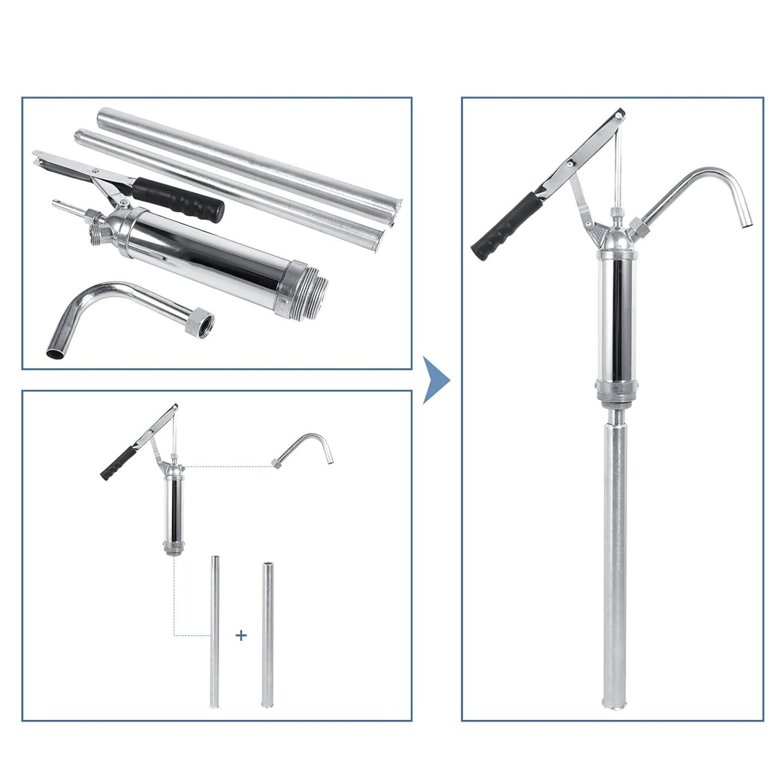 Thanks to the telescopic suction tube, the pump is suitable for use with drums from 60 to 205 liters. This offers flexibility and convenience when working with various drum sizes.