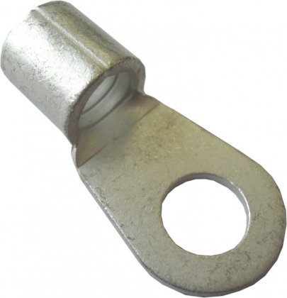 This uninsulated starter eye is made from tinned copper, providing excellent electrical conductivity and resistance to corrosion. The tinning protects the copper from oxidation, ensuring long-lasting reliable connections.