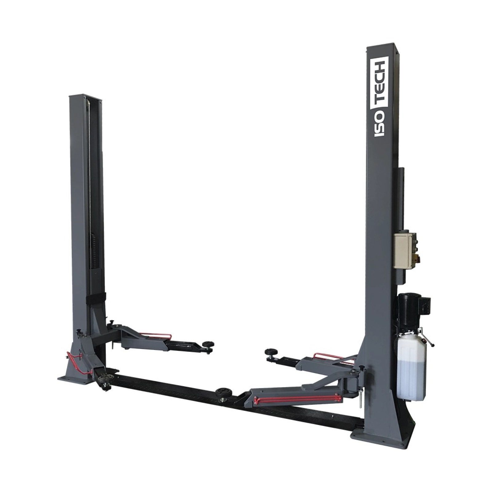 The Isotech IEQ1015 2-post lift is designed for garages that value reliability and efficiency. Thanks to its sturdy electro-hydraulic construction, this lift is securely anchored to the ground, ensuring a safe and stable lifting experience.