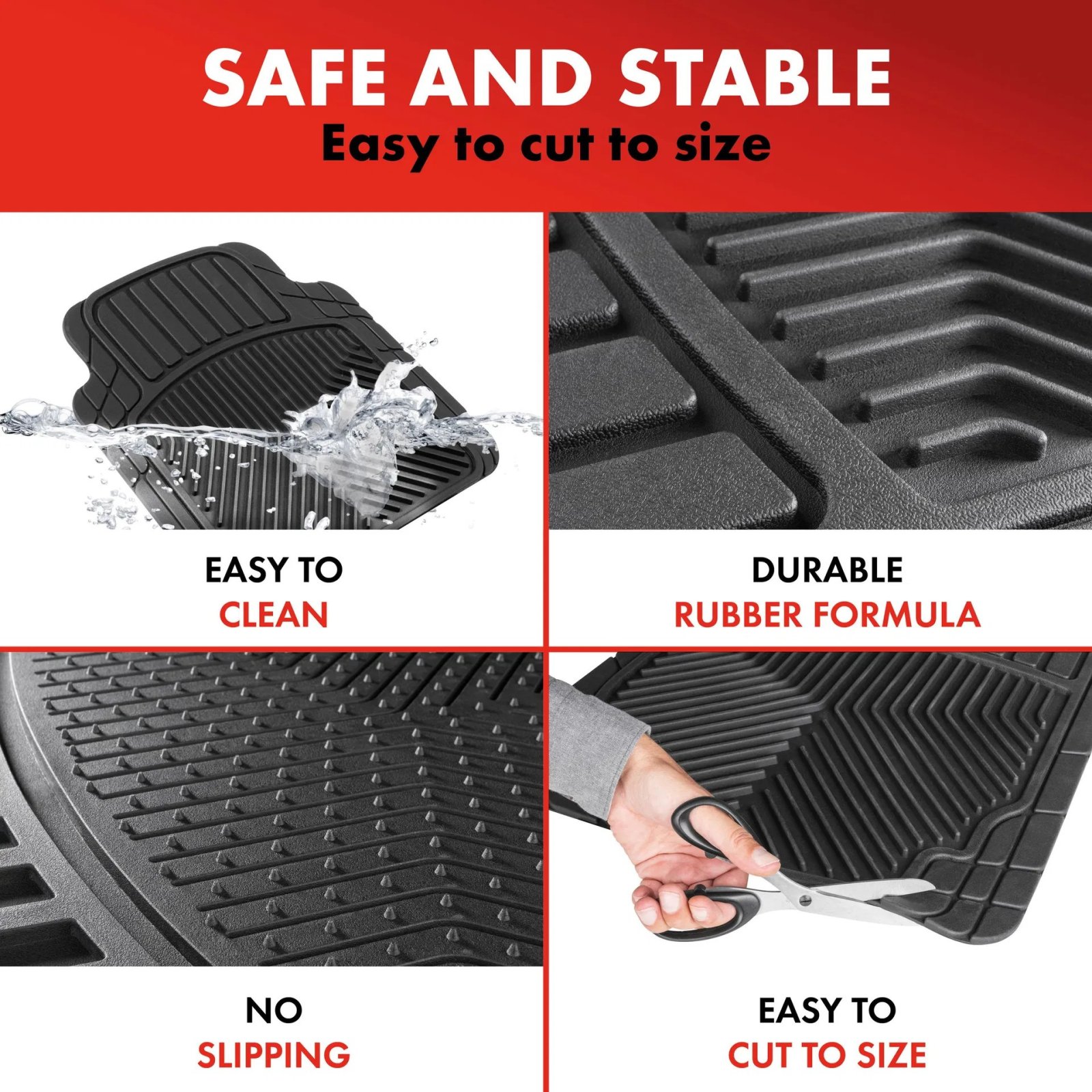 Grâce à la conception universelle et aux lignes de coupe préformées, vous pouvez facilement découper les tapis pour un ajustement parfait dans votre voiture. Cet ensemble convient ainsi à une large gamme de véhicules.