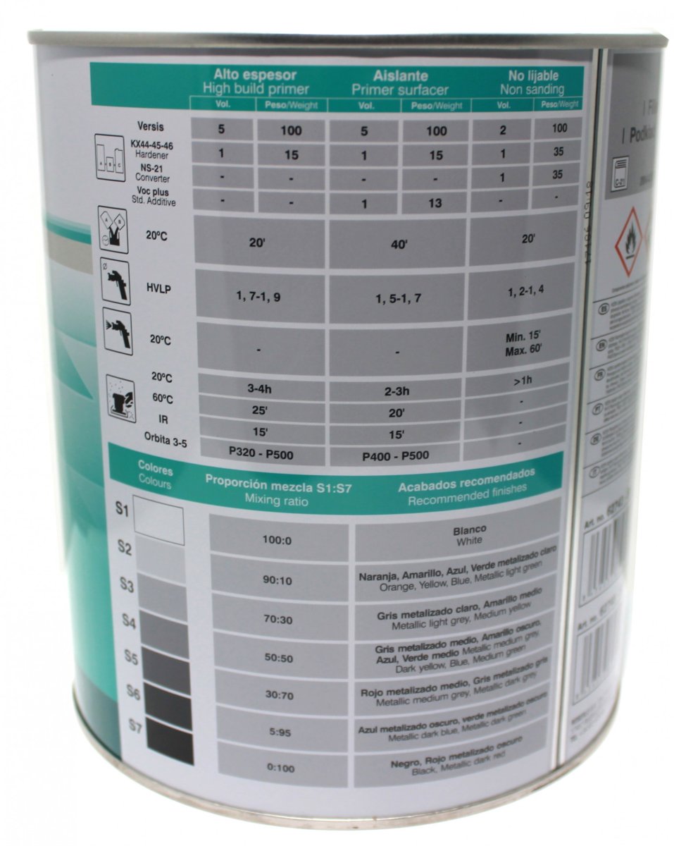 La gamme de couleurs de la ligne Versis, composée de S1 blanc, S4 gris et S7 noir, assure une finition homogène, quelle que soit la couleur ou le pouvoir garnissant utilisé. Cela permet d'adapter l'apprêt à la couche de finition pour un résultat optimal.