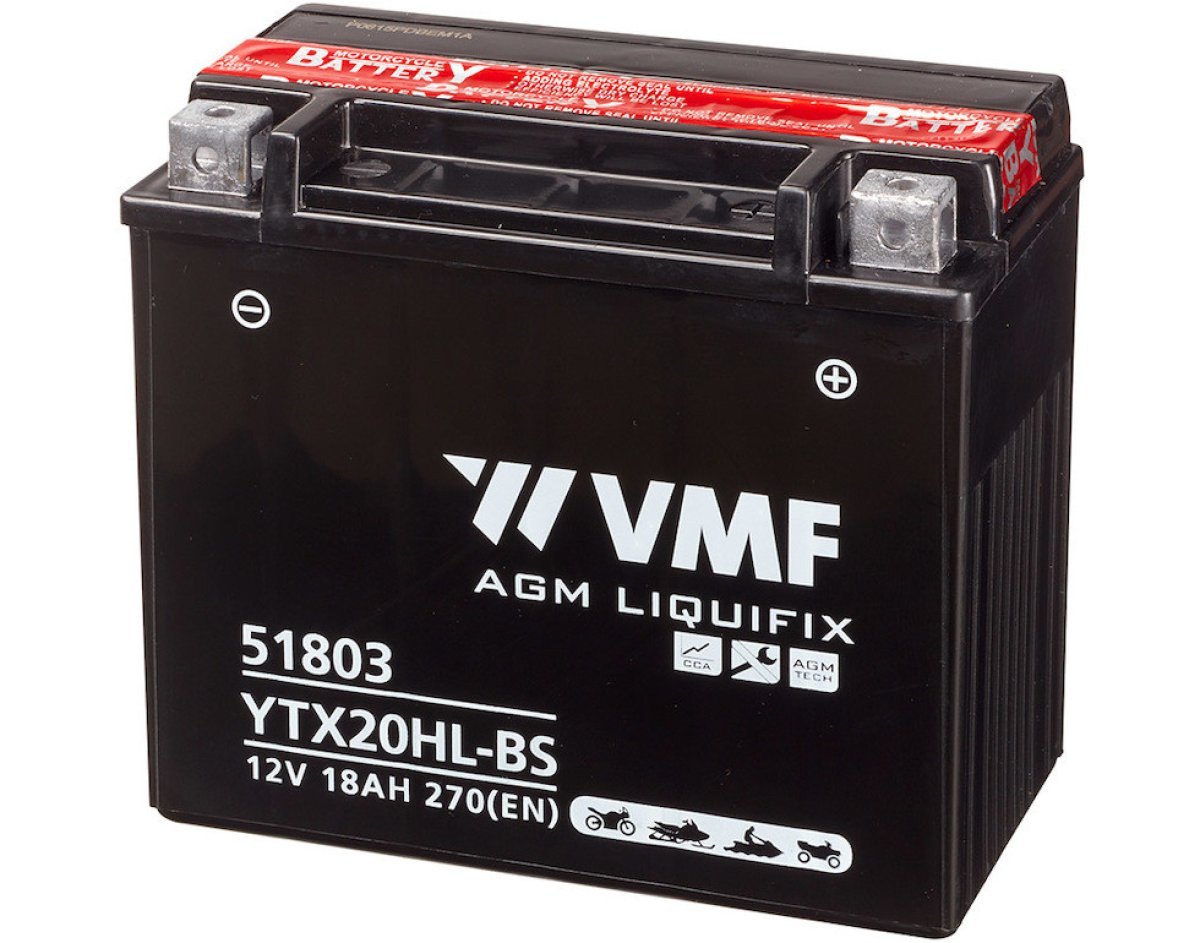 La batterie moto VMF YTX20HL-BS fournit une tension de 12 volts et une capacité de 18 Ah, assurant une alimentation fiable pour votre moto. Avec un courant de démarrage à froid de 270 A, votre moteur démarre sans effort, même dans des conditions difficiles.