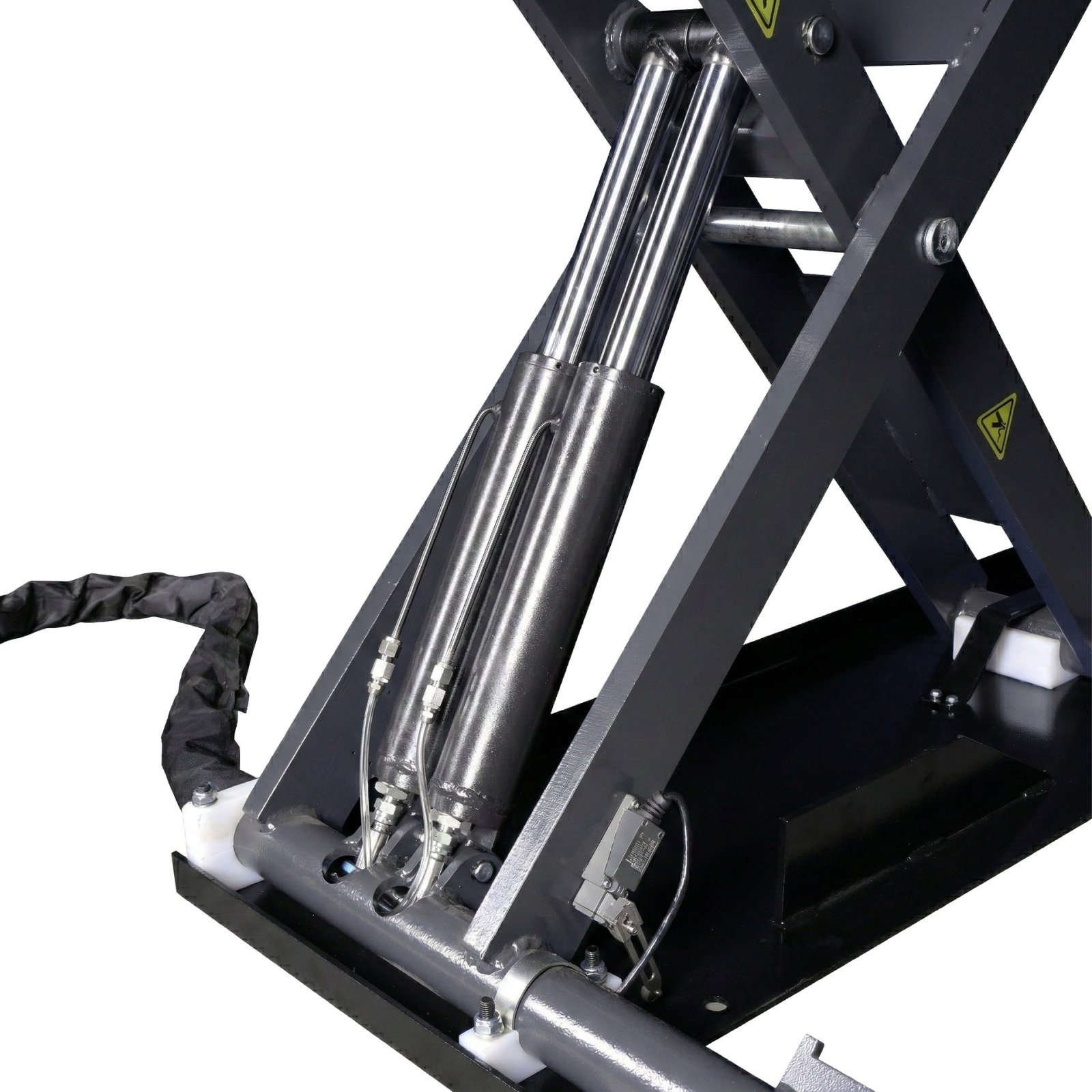 Avec quatre puissants vérins hydrauliques, deux par plateforme, ce pont élévateur offre une expérience de levage fiable et stable. Le système hydraulique maître-esclave garantit un mouvement de levage uniforme et sûr, essentiel pour un usage professionnel.