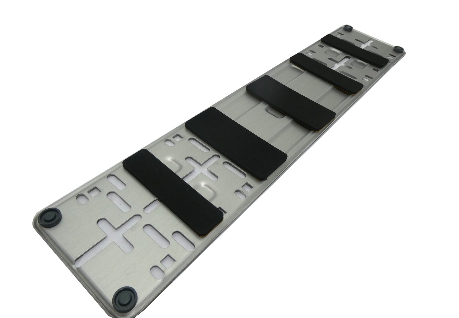 De kit bevat twee flexibele rubbers die je eenvoudig op maat kunt knippen en in de uitsparingen van je nummerplaathouder kunt plaatsen. Hierdoor is het niet nodig om lijm of andere bevestigingsmiddelen te gebruiken, wat de installatie snel en schoon maakt.