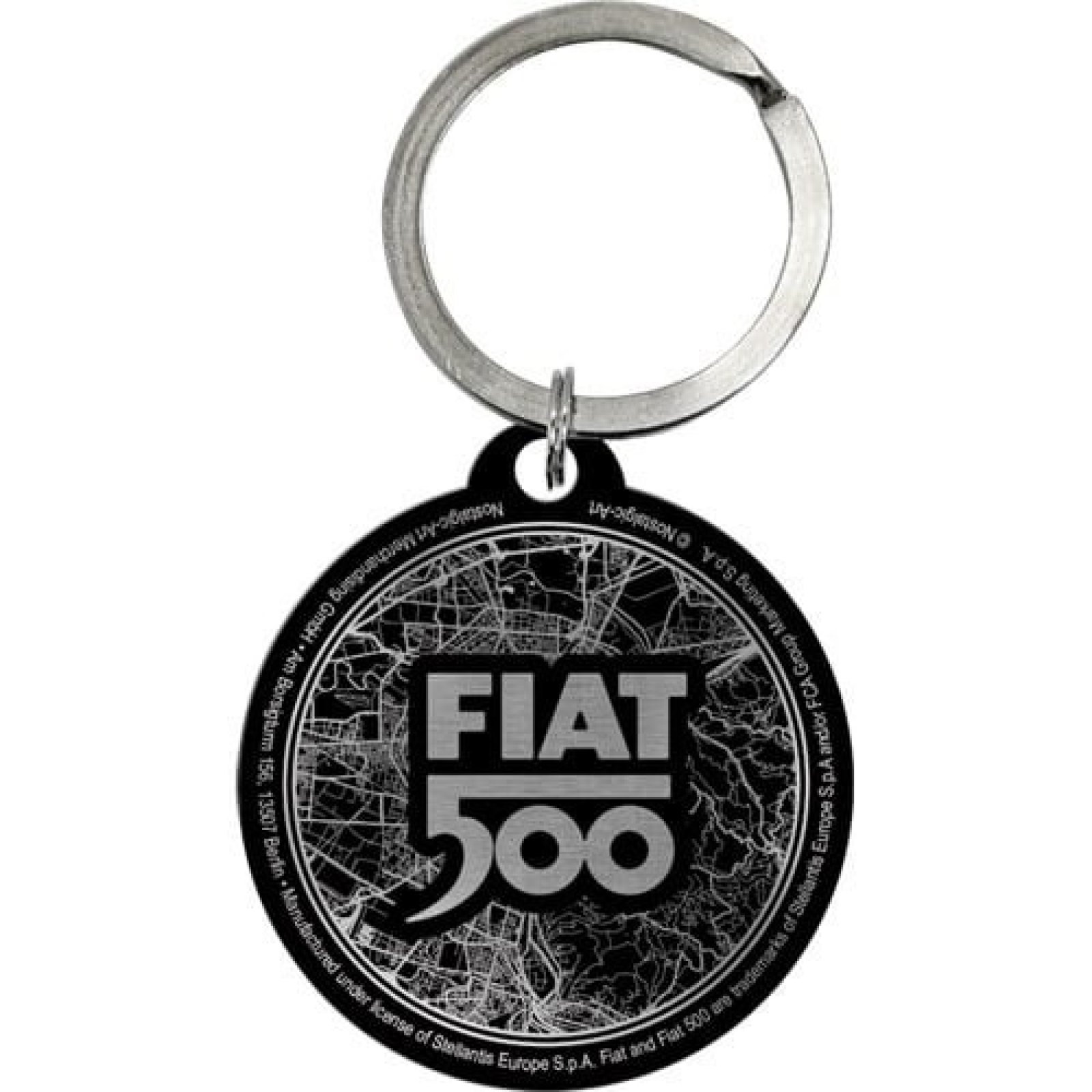 NOSTALGIC ART SLEUTELHANGER FIAT 500 - TURIN ITALY ROESTVRIJ STAAL Ø 4 CM