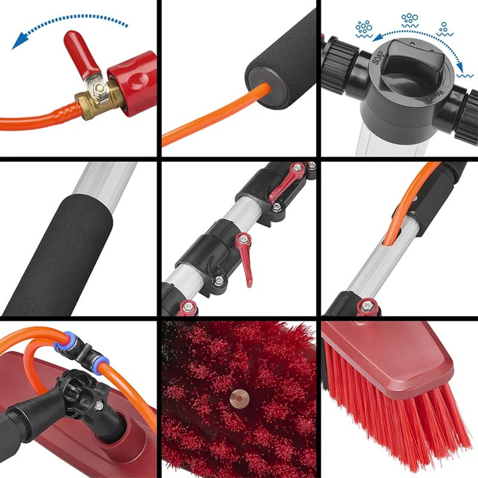 Met de PROPLUS telescopische heavy duty wasborstel met waterdoorvoer en zeepdispenser beschik je over een professioneel hulpmiddel voor een grondige en efficiënte reiniging van diverse voertuigen en oppervlakken.