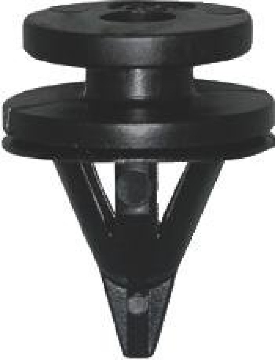 Deze zwarte kunststof clip, met OEM-nummer 7703077354, is ontworpen voor het stevig bevestigen van interieurpanelen in Renault auto's. Ze wordt gebruikt voor het vastzetten van onder andere deurbekleding, dakstijlen en bekleding van de achterklep. Dankzij het tweedelige ontwerp kan de clip eenvoudig worden verwijderd en opnieuw worden gebruikt zonder schade aan de panelen.
