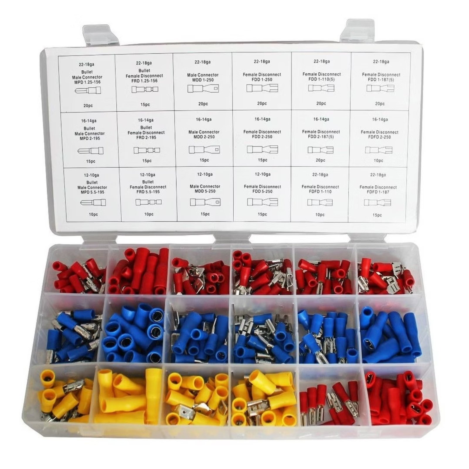 Met het Weber Tools Assortiment geïsoleerde Kabelschoenen beschik je over een complete set van 280 kabelschoenen en -verbinders, geschikt voor draaddikten van 0,5 mm² tot 6 mm². Deze set is ideaal voor zowel professionele als doe-het-zelf toepassingen in de elektrotechniek.