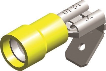 De gele kleurcode geeft aan dat deze kabelschoen geschikt is voor kabels met een doorsnede van 4,0 tot 6,0 mm². Dit maakt ze ideaal voor toepassingen waar hogere stroomsterktes vereist zijn, zoals in voertuigen en zware machines.