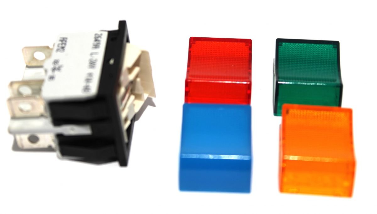 De schakelaar wordt geleverd met vier opzetkapjes in de kleuren groen, rood, blauw en oranje. Hierdoor kun je de schakelaar eenvoudig aanpassen aan je persoonlijke voorkeur of de kleurcodering van je elektrische systeem.