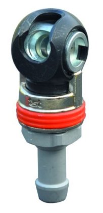 De koppeling is voorzien van een oranje ring die eenvoudig naar achteren geschoven kan worden om de verbinding te ontkoppelen. Dit gebruiksvriendelijke ontwerp zorgt voor een snelle en moeiteloze bediening, wat bijdraagt aan een efficiënte workflow.