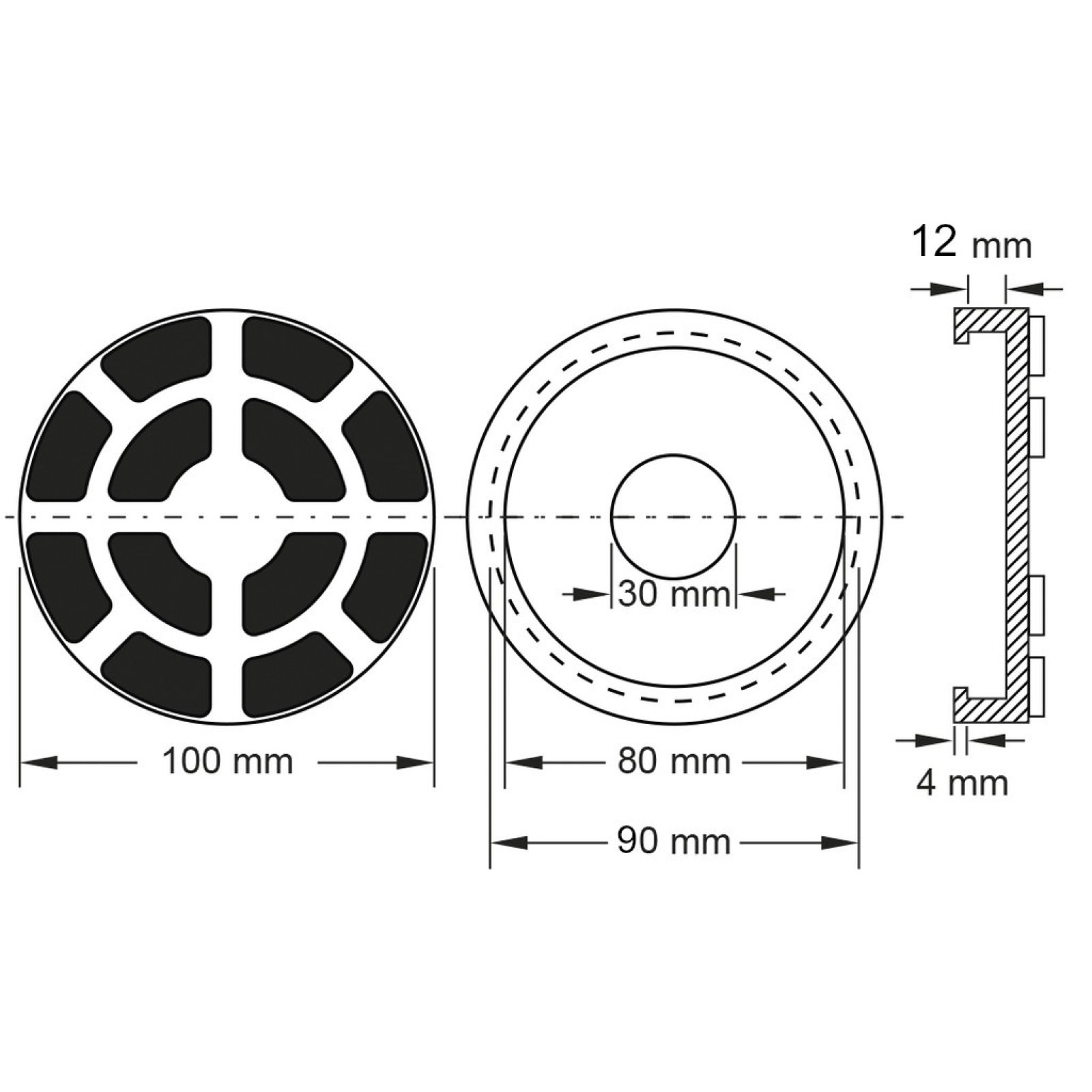 Met afmetingen van 100 x 100 x 21 mm en een binnendiameter van 80 mm past dit opnamepad perfect op de daarvoor bestemde opnamepunten van Ravaglioli hefbruggen. Deze nauwkeurige pasvorm zorgt voor een stabiele en veilige hefervaring.