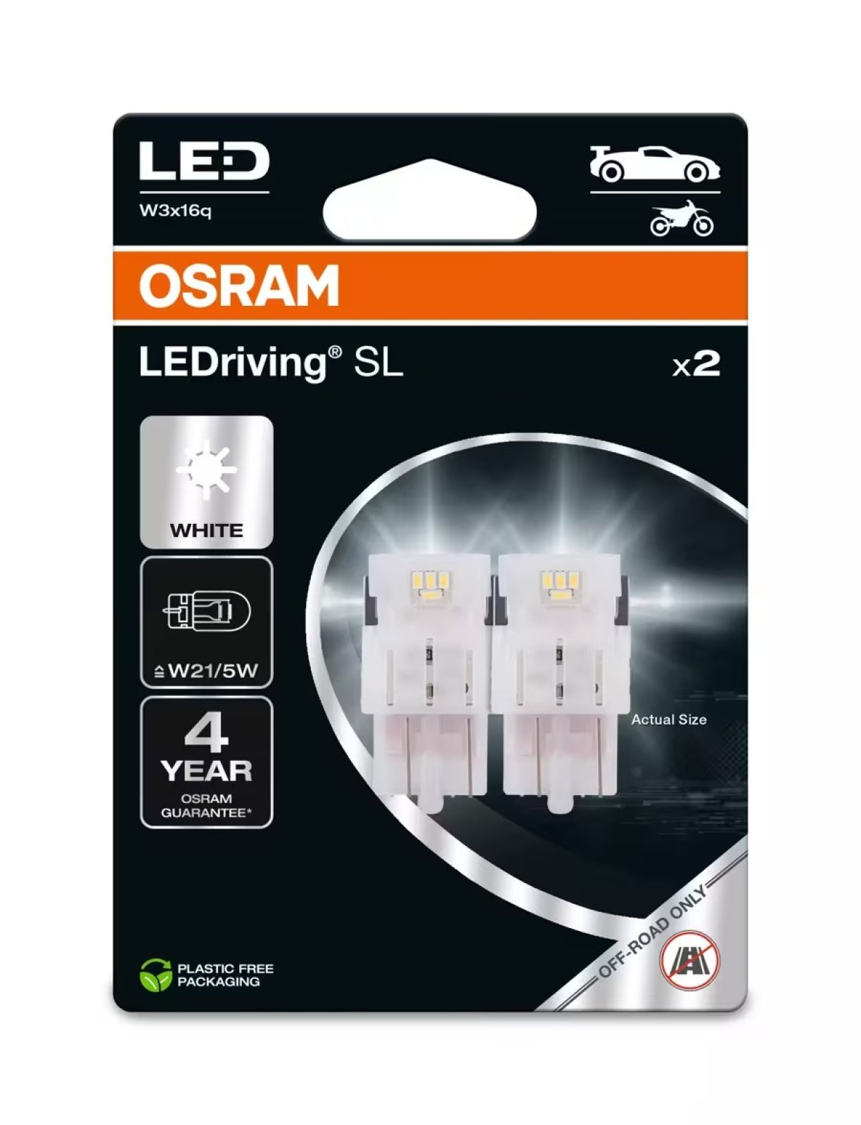 De OSRAM LEDriving SL W21/5W 6000K 12V LED-lampen bieden een koel wit licht met een kleurtemperatuur van 6000 Kelvin. Dit zorgt voor een strakke en moderne look voor je auto.