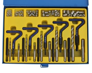 Deze 80-delige set bevat alles wat je nodig hebt om verschillende maten schroefdraad te repareren: